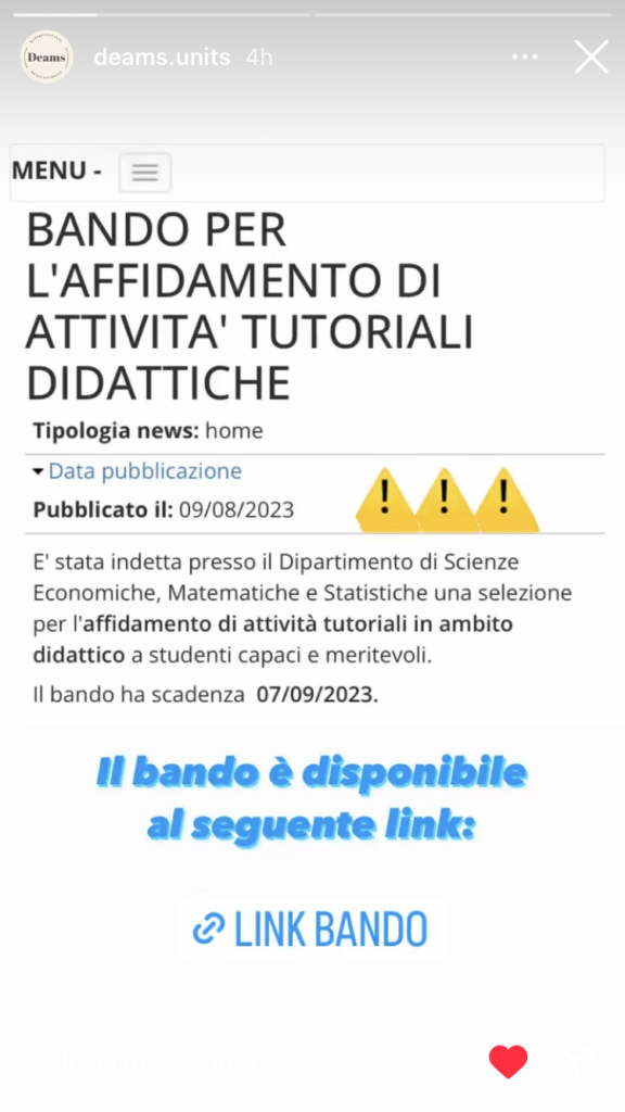 Vuoi inserire una prima esperienza professionale sul tuo CV? diventa tutor Deams! i bandi sono aperti fino al 7 settembre 2023!